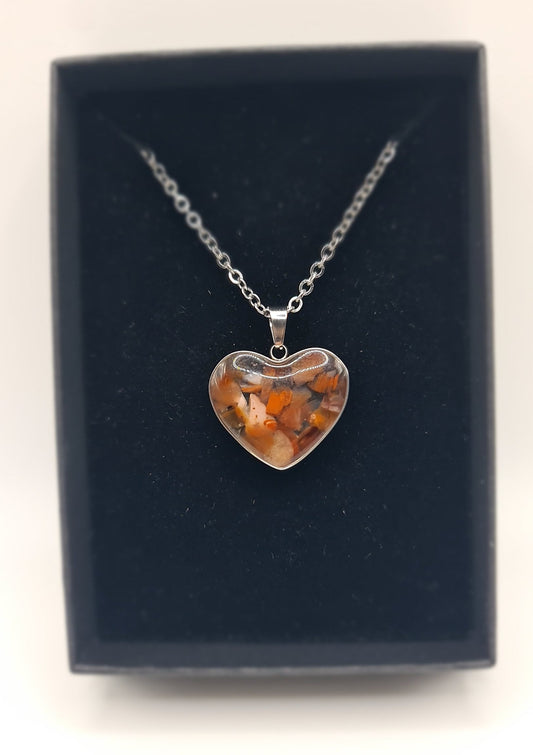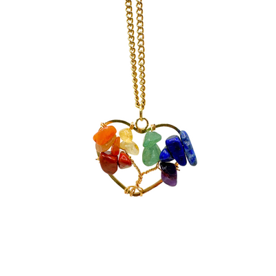Rainbow Chakra Heart Chip Gemstone Necklace