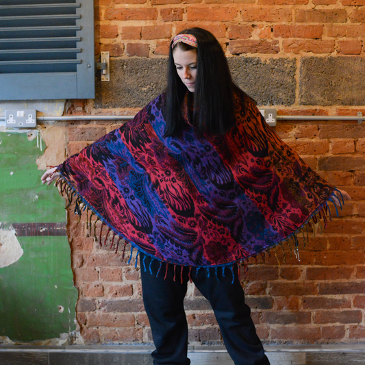 Vegan "Wool" Cowl Neck Poncho - Nature Patterns