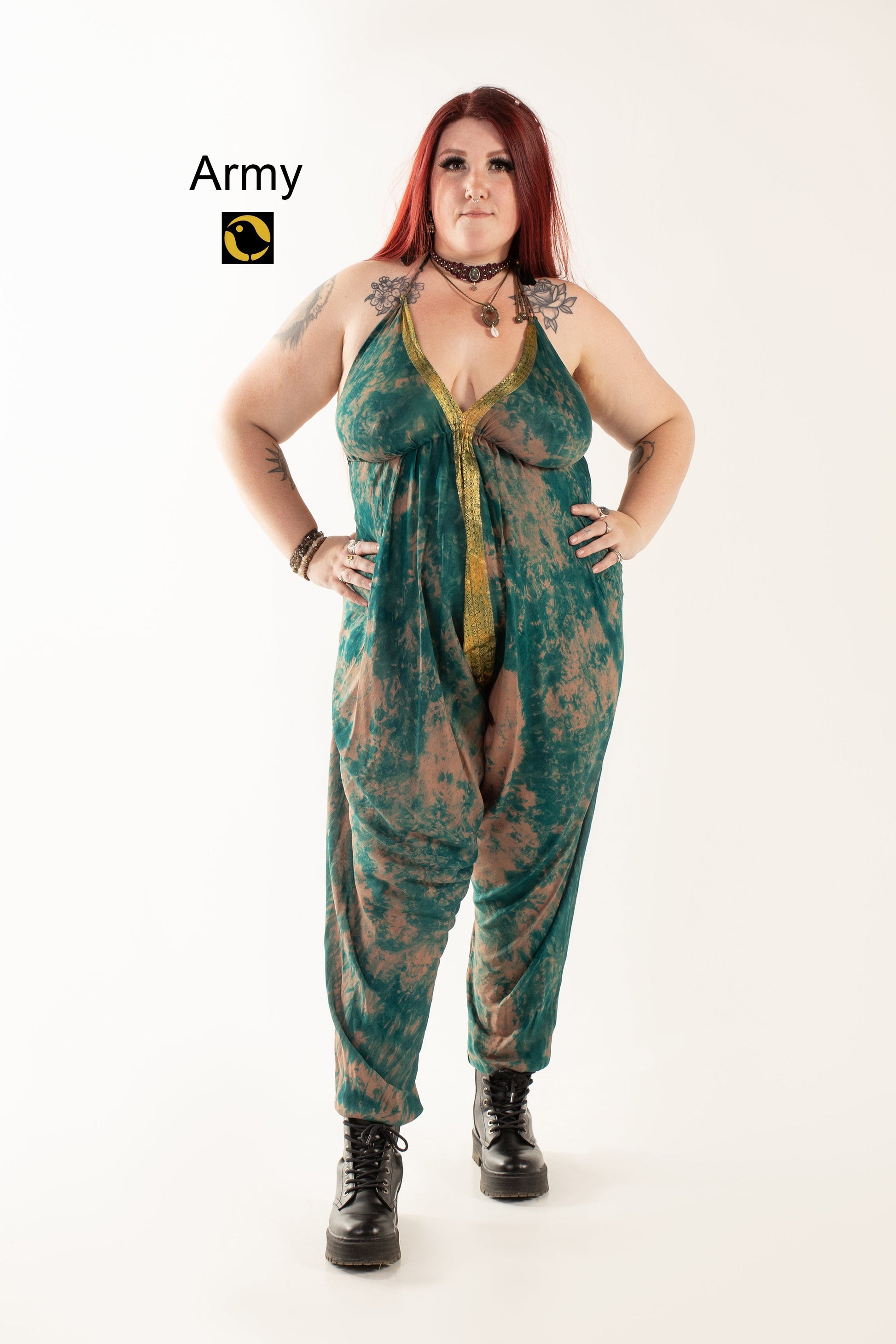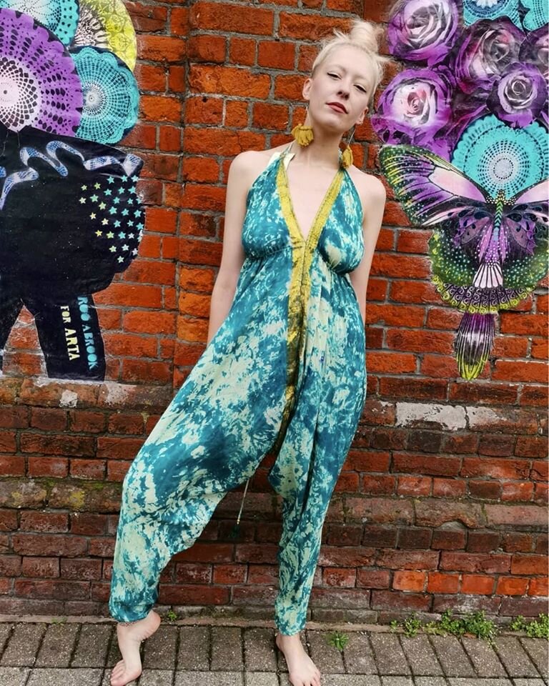 The Tweedy Jumpsuit is made from 100% recycled silk and features the funky, classy, and sexy combination of drop crotch and stunning low cut back. The magic strap situated under the bust is every girl’s best friend, enabling perfect support for ALL shapes and sizes.  Just ruche the fabric around the cup and then lift and tie into place to get you perfect fit.  Team with boots for that perfect festival funk. Look like a million dollars on the beach or dress it up with heals for a night out on the town. This is an absolute fashion MUST HAVE.