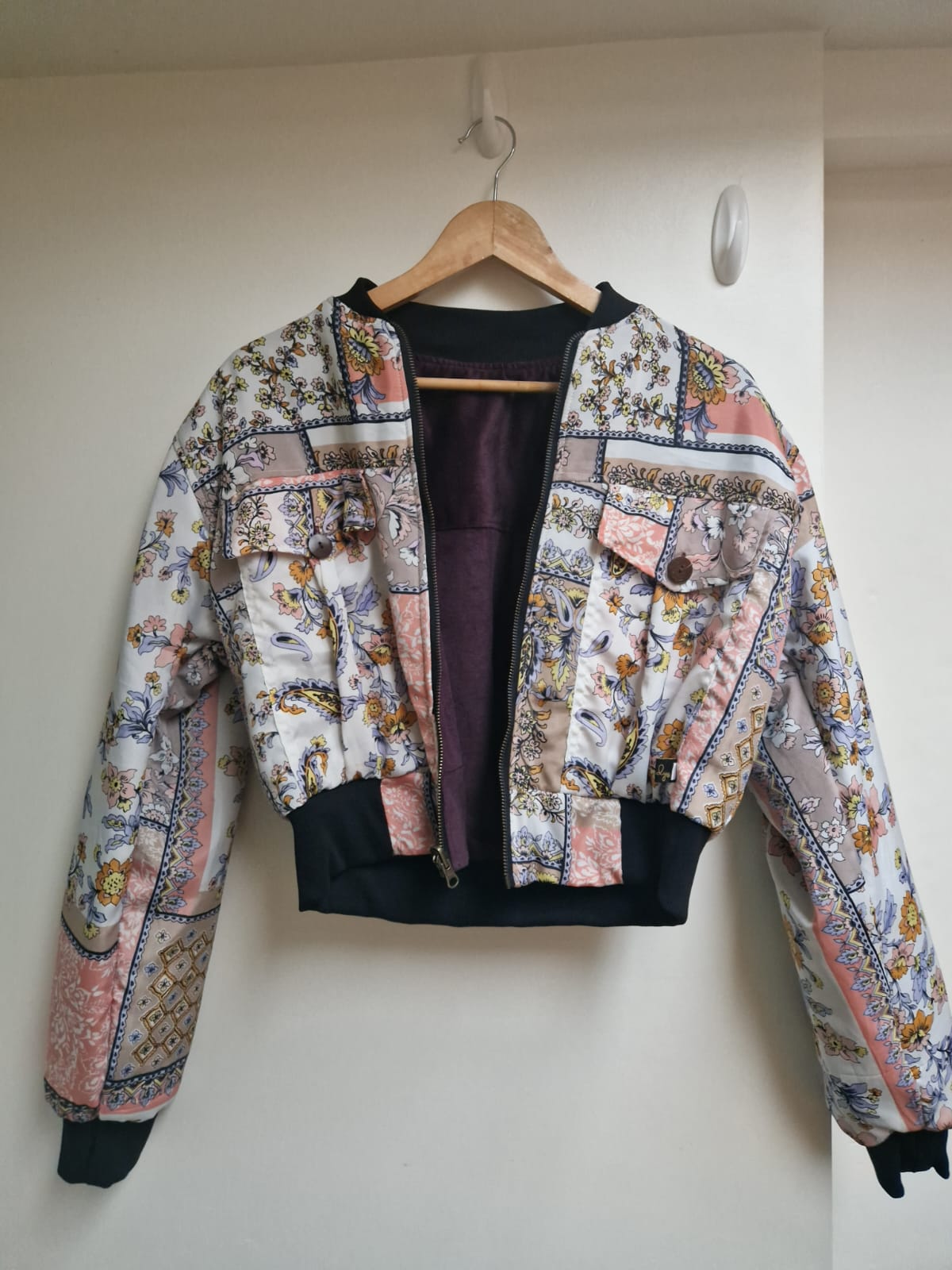 Cropped reversible bomber jacket (Aubergine and peach print)